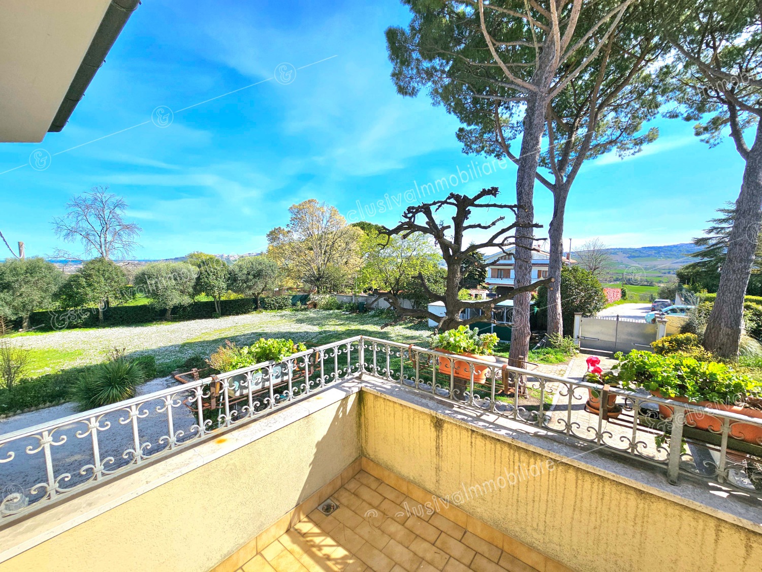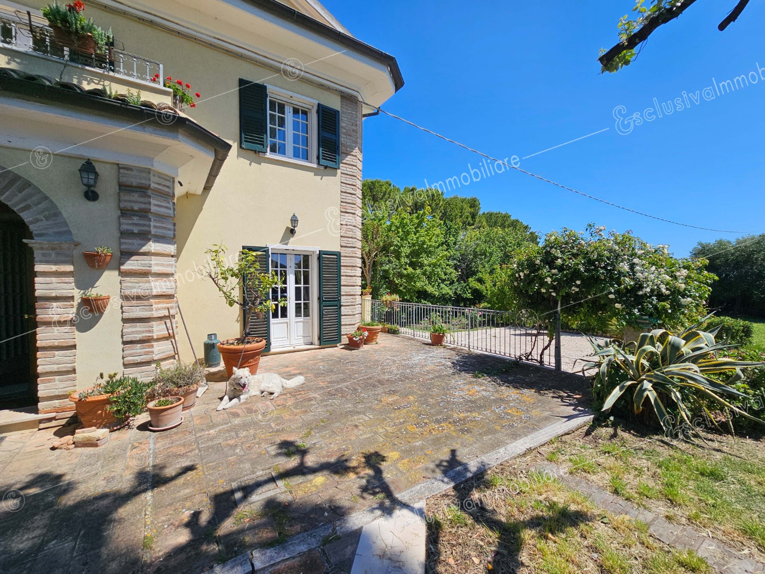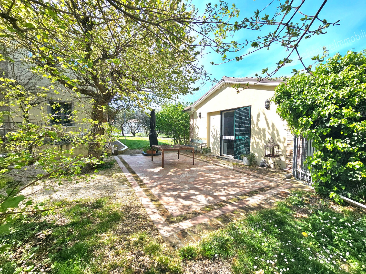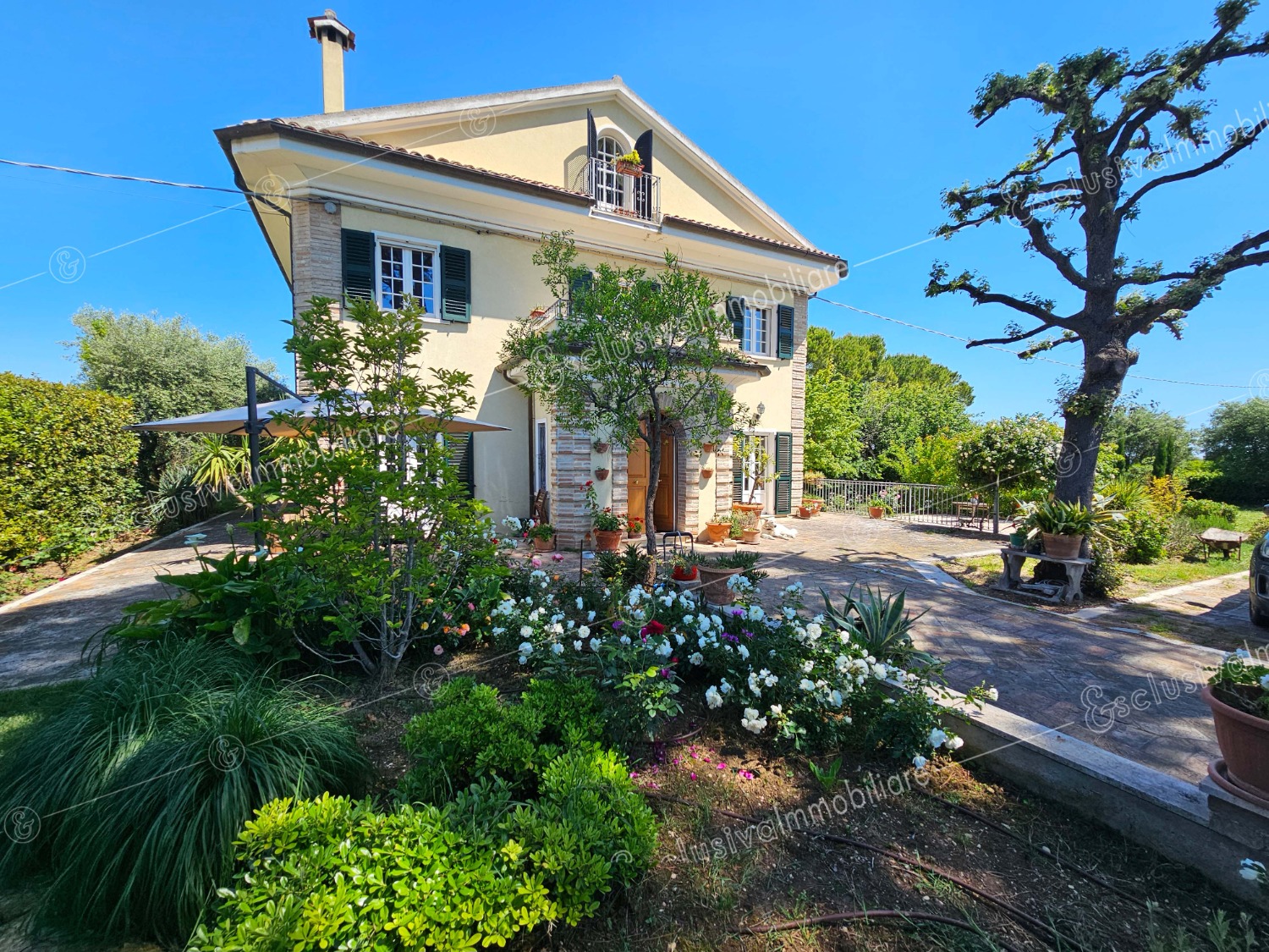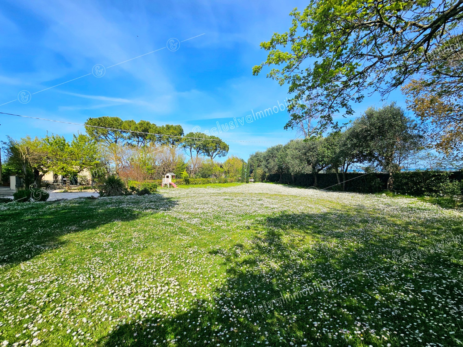 Attraverso un viale privato bordato da pini secolari si apre un mondo riservato e ricco di suggestioni. Un giardino all’inglese di oltre 4.500 mq abbraccia la proprietà, profumato da alberi di limoni, fichi, melograni e da oltre 30 ulivi — alcuni antichissimi — che donano ogni anno un eccellente olio extravergine biologico. Un pergolato in olmo regala ombra e poesia nelle ore estive, mentre un antico pozzo ricorda il passato contadino della tenuta.