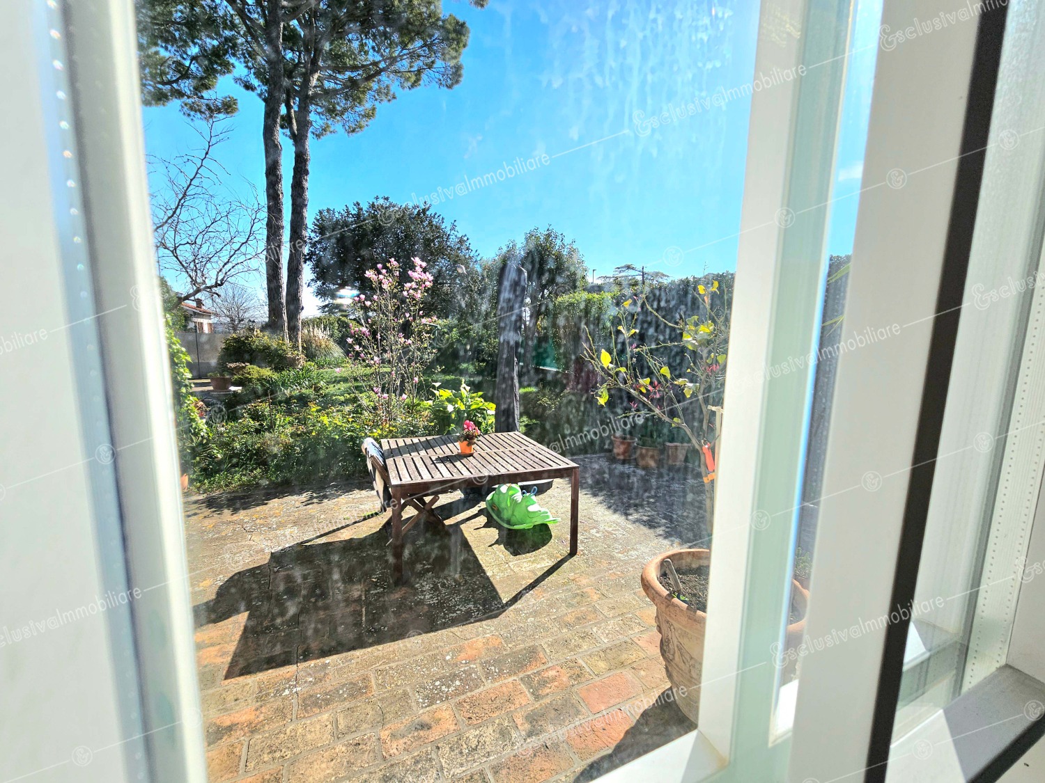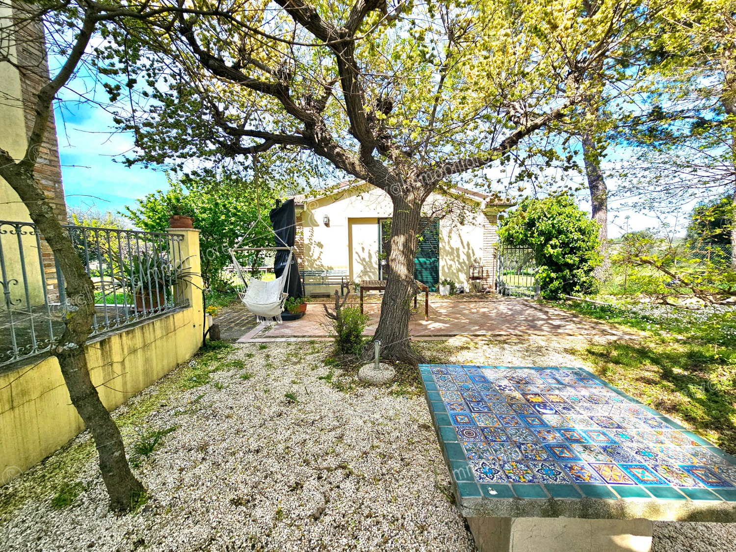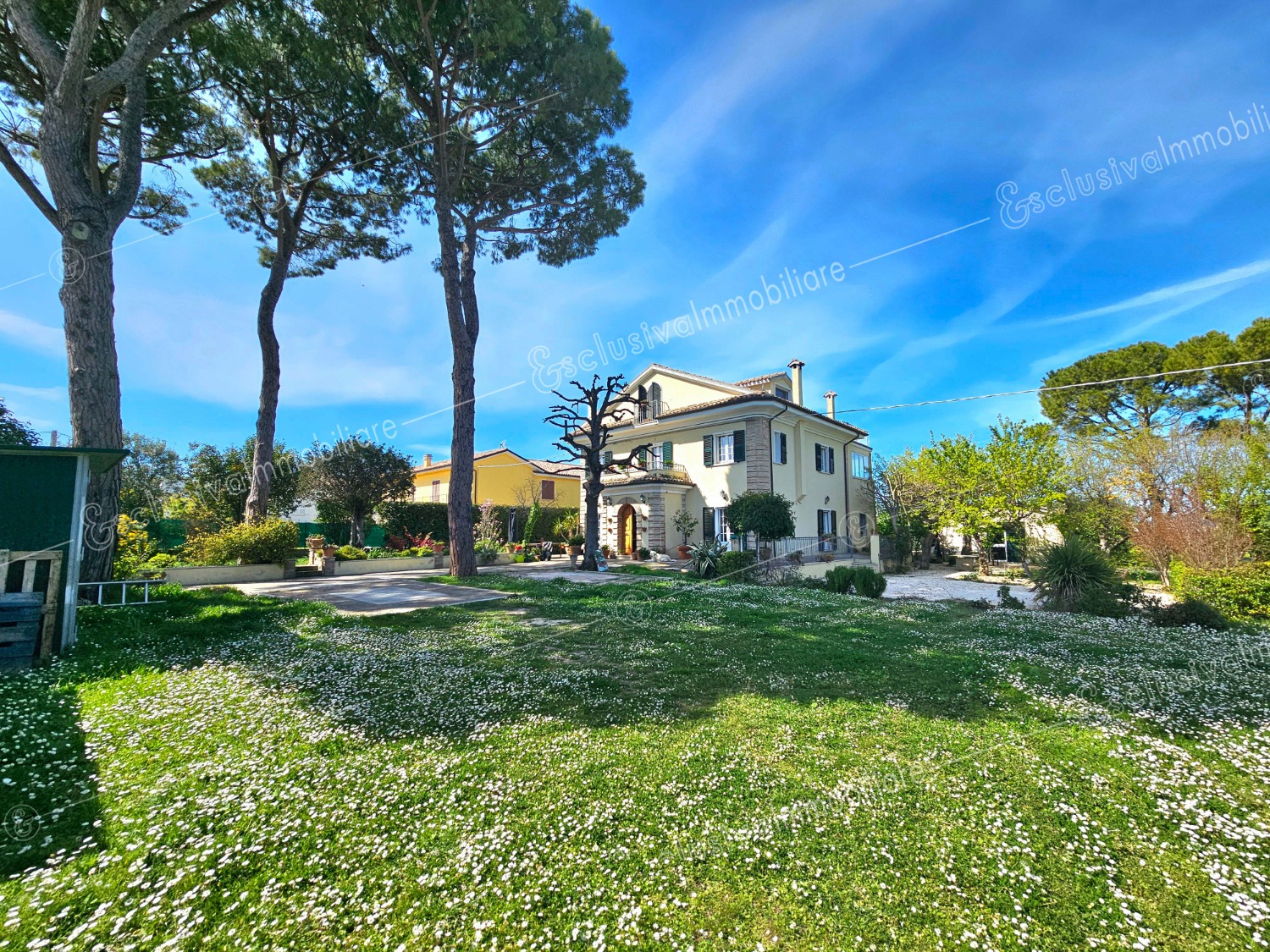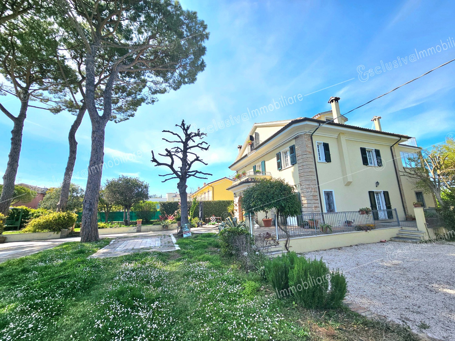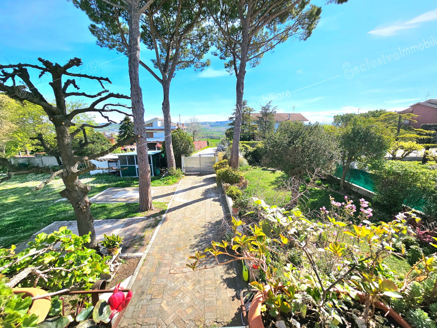Attraverso un viale privato bordato da pini secolari si apre un mondo riservato e ricco di suggestioni. Un giardino all’inglese di oltre 4.500 mq abbraccia la proprietà, profumato da alberi di limoni, fichi, melograni e da oltre 30 ulivi — alcuni antichissimi — che donano ogni anno un eccellente olio extravergine biologico. Un pergolato in olmo regala ombra e poesia nelle ore estive, mentre un antico pozzo ricorda il passato contadino della tenuta.